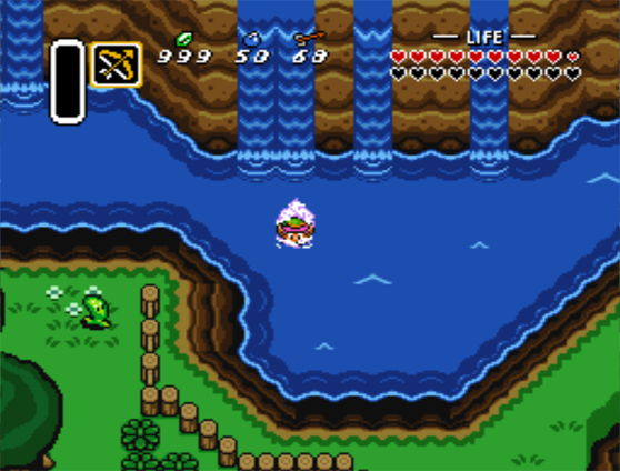 Fizz says: It’s possible that the early version of the game had a max of 50 arrows. The bow sprite is different as well, looking more like the sprite used when throwing it into a fairy fountain. There’s an extra Buzz Blob, slightly different waterfall graphics, and less bushes.