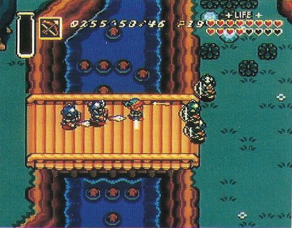 These prerelease screenshots were kindly scanned by DigitalZero Domain’s xdaniel from a European SNES ad poster that came packaged with the system circa 1992. (A larger shot of the full poster can be viewed here.) They exemplify a few of the differences between the early version of A Link to the Past and the final game.